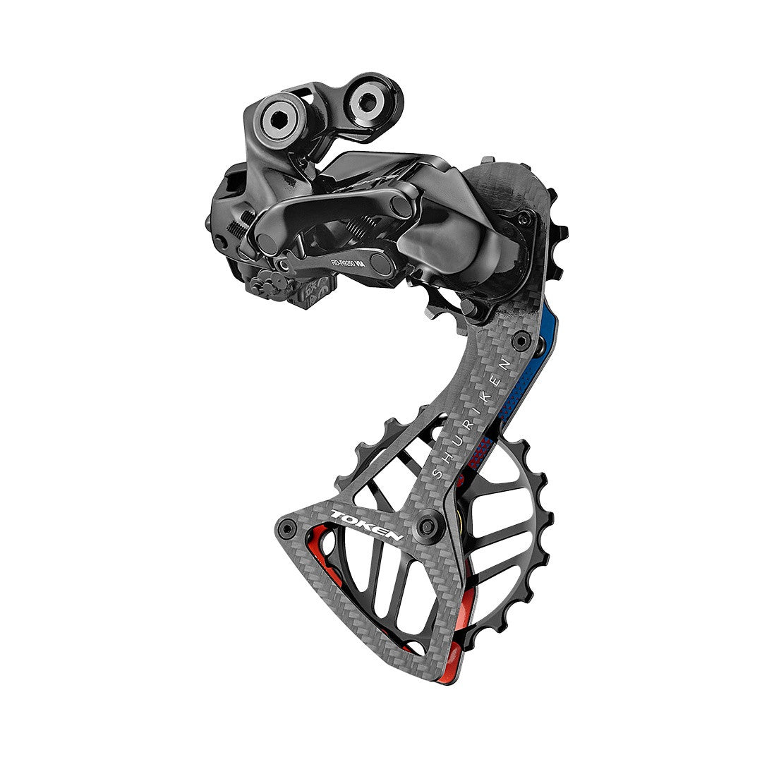 Token Shuriken Oversized Pulley Set For 12 Speed Shimano Ultegra Di2 and Dura Ace Di2 - Red/Blue is backordered and will ship as soon as it is back in stock.