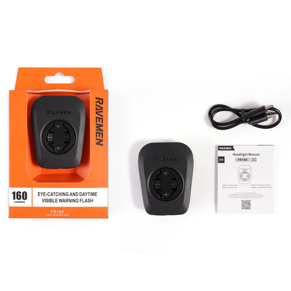 The Ravemen FR160 Headlight is a lightweight and easy-to-use light designed to improve rider visibility during daytime rides. With high-efficiency COB LEDs and a maximum output of 160 lumens, it is built to help cyclists stand out more clearly in traffic and busy road conditions.
