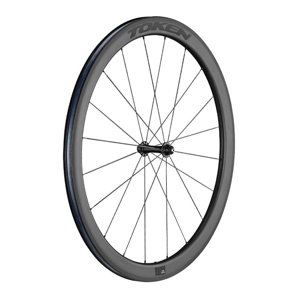 The Token Resolute C45R Full Carbon Clincher 45mm wheelset offers a balance of lightweight construction, durability, and aerodynamic performance. With its 45mm deep carbon rims, this wheelset is designed for competitive cyclists who demand speed, strength, and reliability in their rides.