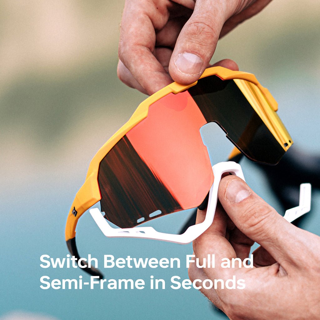 One Pair. Endless Possibilities: The modular construction allows the lower frame and nose pads to detach easily, letting you switch between configurations in seconds. Full-frame mode offers added structure and confidence for high-speed or rough-surface riding, while semi-frame mode reduces weight and boosts airflow for endurance days and intense climbs.