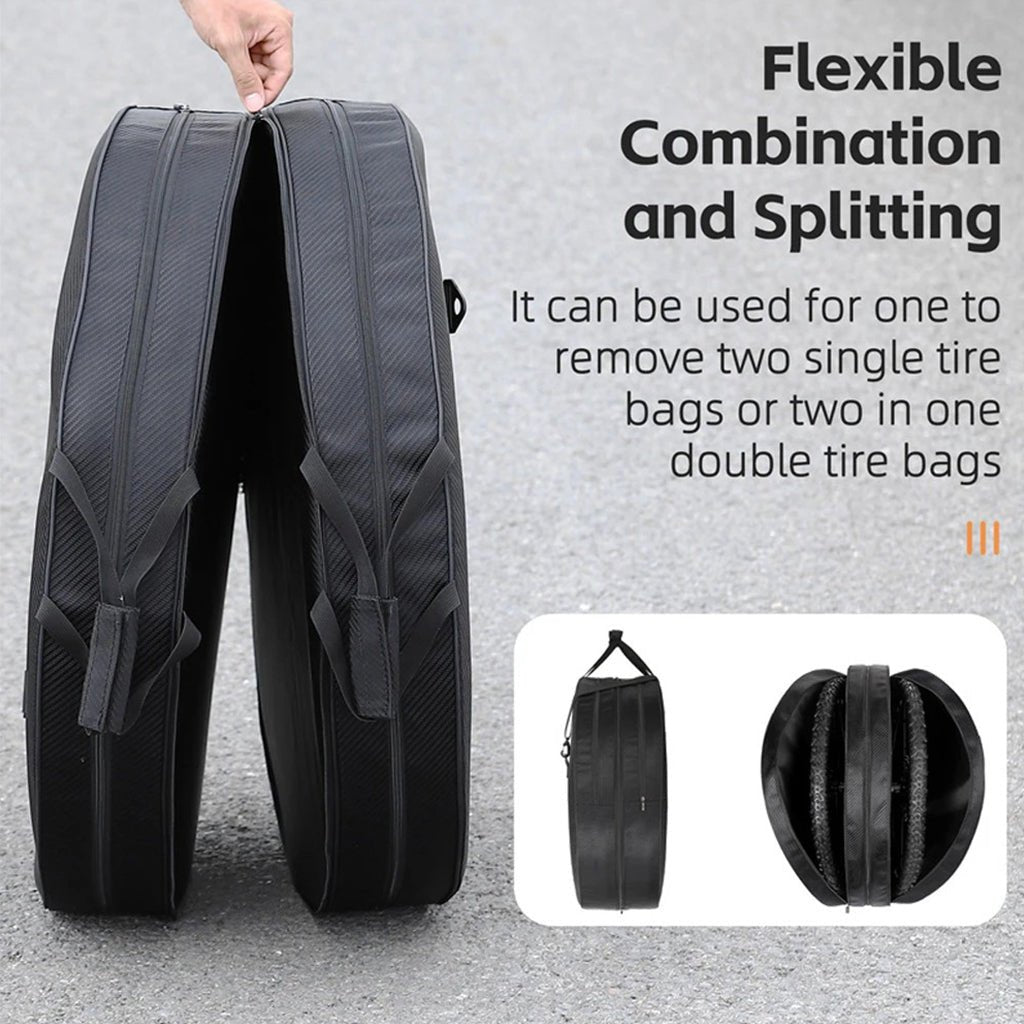 Flexible Design with Detachable Wheel Bags: The bag’s unique design allows it to be separated into two single wheel bags, giving you flexibility based on your transport or storage requirements. Whether you need to carry one wheel or two, this bag adapts to meet your needs.